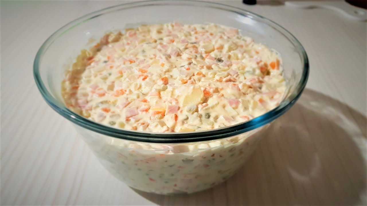 Ruska salata: grašak, šargarepa, krompir, šunka, kiseli krastavci, majonez…